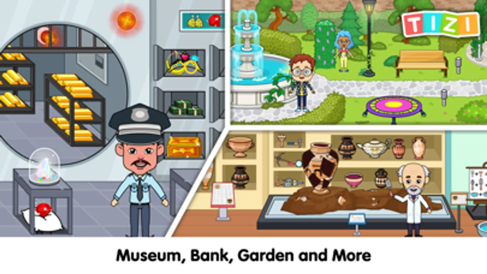 Create stories and build your life world with Tizi World! Welcome to the Tizi World. Tell your friends about building my town in Tizi and experience the endless opportunities for adventure in this pretend play game. Explore this Wonder World filled with endless things to do. Kids can take control of all aspects of the town to interact with different locations and countless characters. The city has a space museum, an Art museum, a Dino museum, a school, an apartment, and a Bank! That's not all, in this fun life world we have new locations coming very soon along with new characters, multiple scenes in new locations, and hidden surprises. Play home Tizi game now!