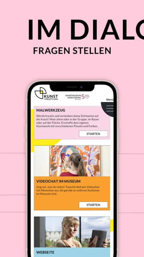 Verändere deine Sichtweise auf die Kunst! Einmal im Quartal wird ein neues Kunstwerk aus der Sammlung dafür ausgewählt. Erschaffe dein eigenes Kunstwerk mit verschiedenen Pinseln und Farben. Male allein oder in der Gruppe, im Raum (Augmented Reality) oder auf der Fläche. Am Ende jedes Quartals werden die bearbeiteten Werke auf der Webseite versammelt. Dort erfährst du auch mehr über die Kunstvermittlung des Kunstmuseums Moritzburg Halle (Saale). Entdecke Unsichtbares über Museum, Kunst, Veranstaltungen und alle Werke des Quartals.