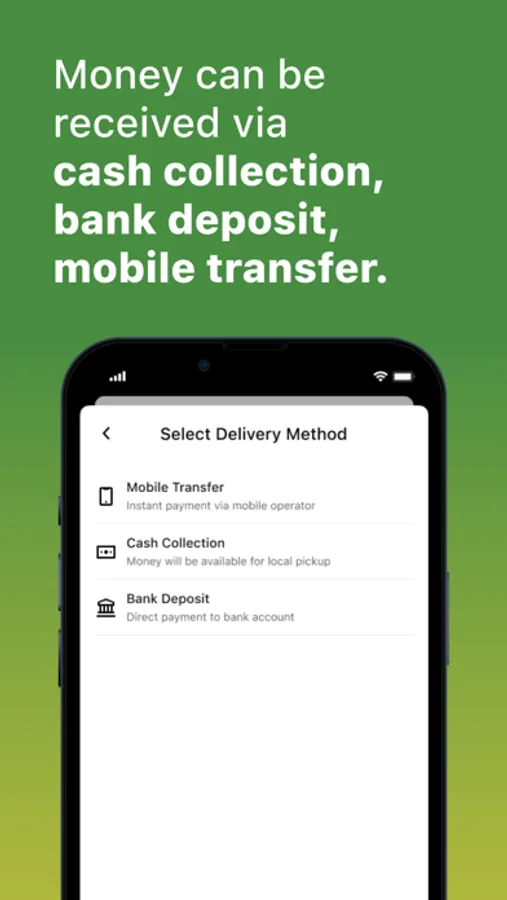 Payments to a bank account, cash pickup, and mobile wallet are usually instantaneous. Bank account payments can take longer if there is a delay in the receiving country.