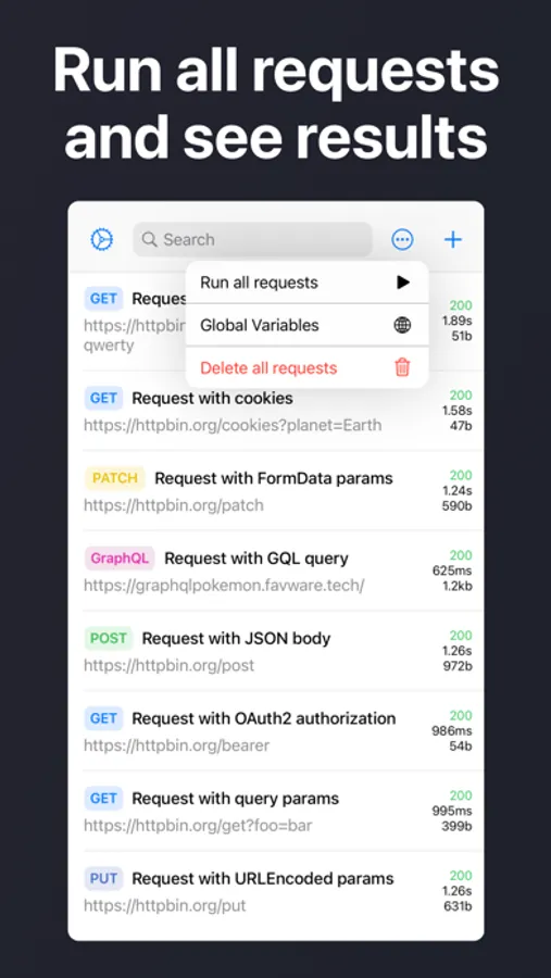 - Need to share request in seconds? One tap and done. Deep link and cURL command supported.