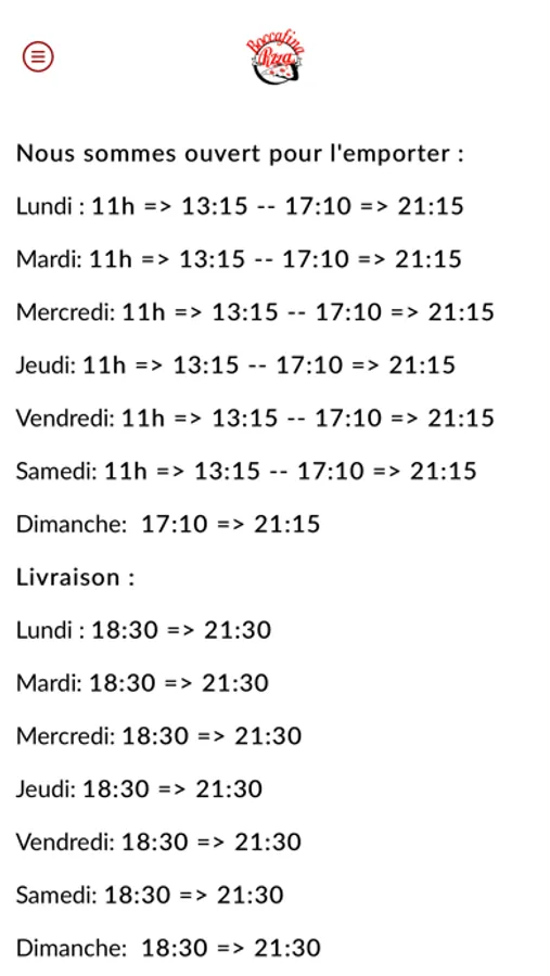 - Confirmation de la commande en temps réel : ce qui signifie que le personnel de la pizzeria confirme immédiatement votre commande, avec le délai de livraison estimé. Pas d'intermédiaire, pas de centre d'appels, pas de promesses excessives. Ceci est juste entre vous et la pizzeria.