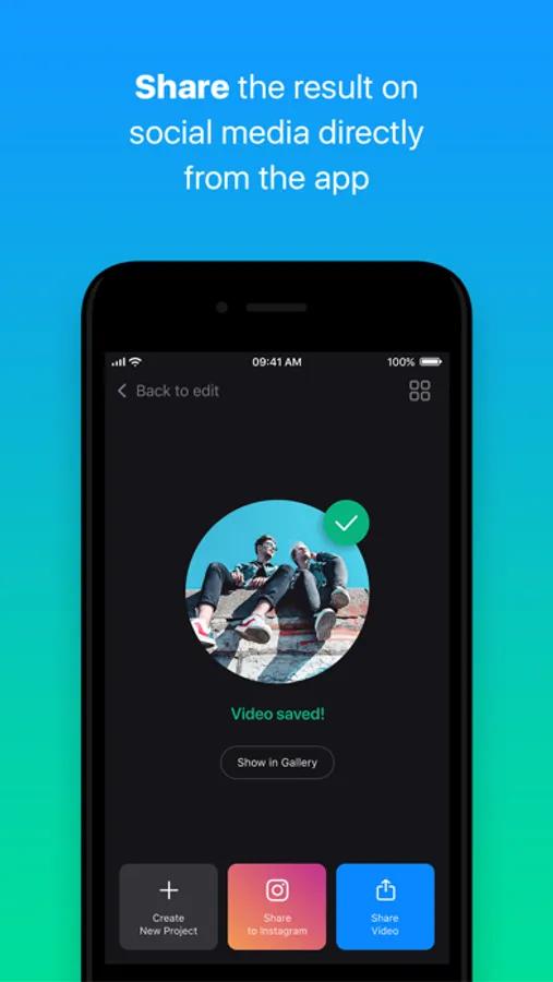 - Share the result on Instagram, Facebook, TikTok or any other social media right away.