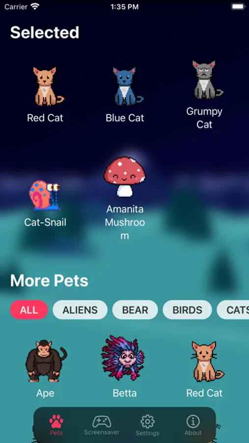 Watch your pets come to life in the app, customize your pet's size, speed, backgrounds, and more.
