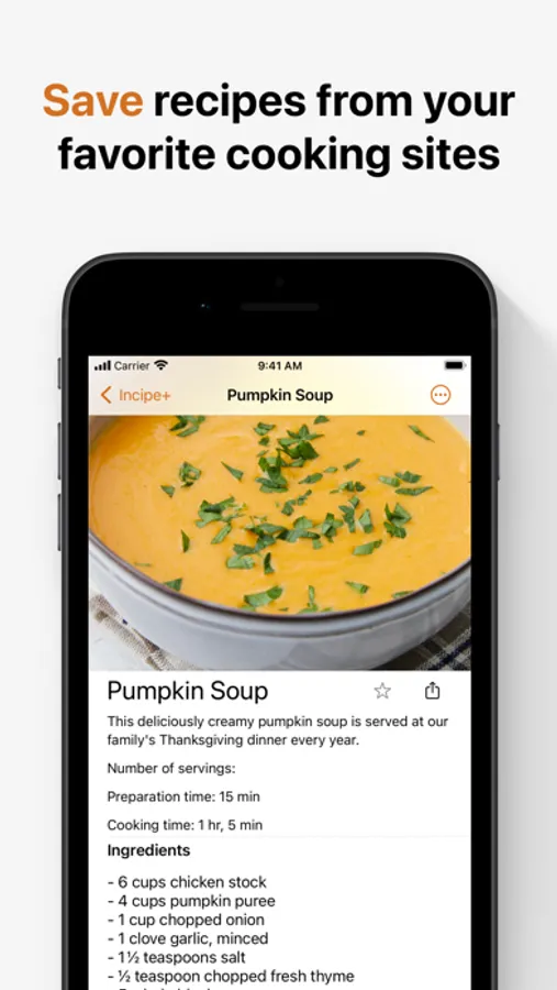 - Save recipes from your favorite cooking sites with just a few taps. Or, add them manually for even more control. Never lose a delicious recipe again.