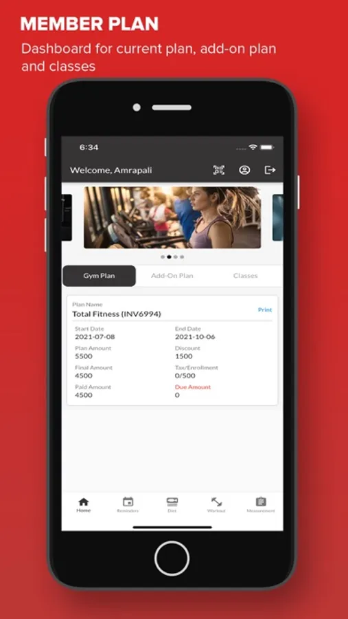 Exclusive gym app for Olympia fitness gym members, Gym member can login to the app with login details provided by gym at the time of membership registration at gym branch. Members can find their plan details, their measurements, members can check their diet plan and exercise plans.