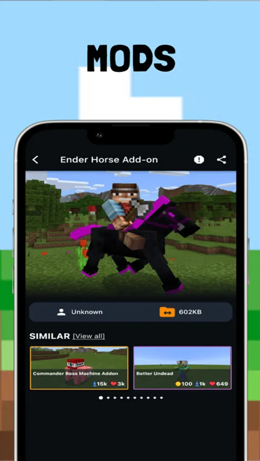 ModBox is a free application for installing mods, skins, buildings and maps. The application installs new mods, skins, maps, buildings, seeds and textures on your phone with one click.