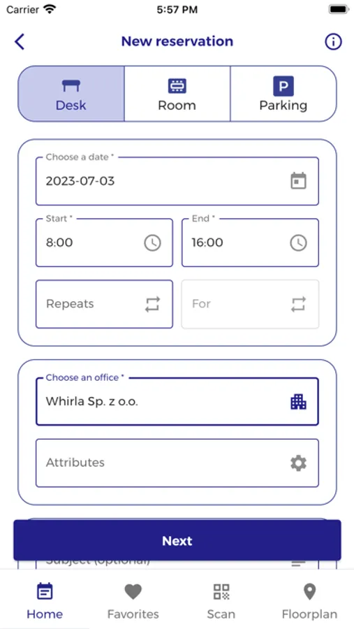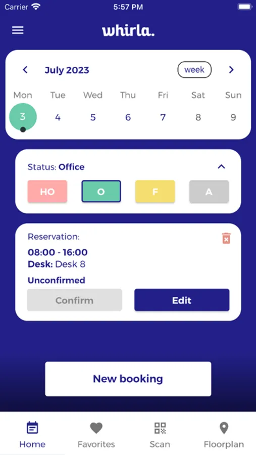 Whirla Smart Office app is the booking app for offices, that helps employees and users navigate hassle-free through hybrid workspaces and hot desk offices. Whirla lets users easily book desks and conference rooms and manage their reservations. It’s as simple as logging in to the employee account, selecting an available seat from the map or the list, booking it and confirming the booking on-site with NFC or QR codes. Users can also mark their favourite desk and create a group and recurring reservations.