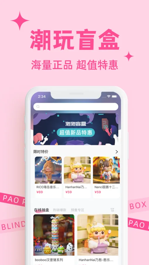 泡泡盲盒可供用户线上抽盲盒,随时随地抽盲盒。泡泡盲盒APP内涵盖海量超人气热门手办、限定玩具;稀有隐藏款盲盒在线惊喜拆箱。