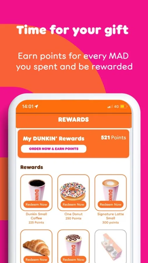 Join the My Dunkin’ Rewards to earn points for every MAD you spend and be rewarded. You can use your points to redeem a selection of our products.