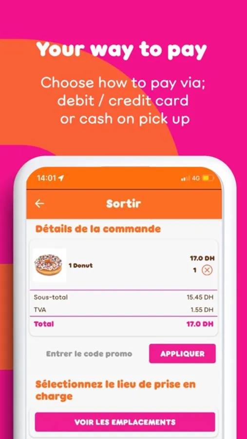 Place your order ahead through the app and skip the wait in a queue at your Dunkin location. You can choose to pickup your order from any of our locations.