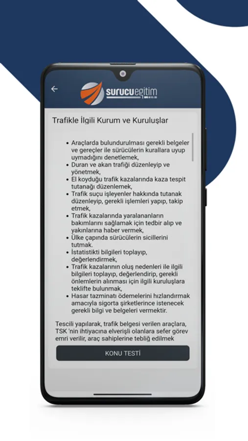 Ehliyet sınavına hazırlanmak için oluşturulmuş yardımcı ders programı. Ücretsiz hesap oluşturarak tüm derslere ve konulara erişebilir, 3 adet E-Sınav çözebilirsiniz. Konu sonu testlerini çözebilmek ve sınırsız E-Sınav oluşturabilmek için premium hesaba ihtiyaç vardır. Sürücü kursunuza danışarak ücretsiz premium hesap alabilirsiniz.