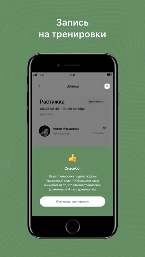 4 вида программы в твоем распоряжении: TRX, Aero Stretching, Stretching, Yoga.