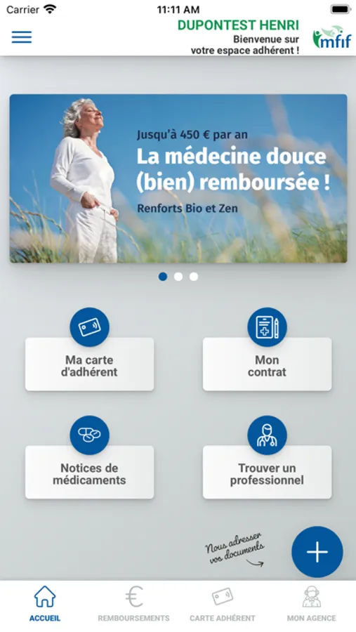 - Votre carte d’adhérent dématérialisée et son datamatrix pour pouvoir justifier à tout moment de vos droits auprès des professionnels et établissements de santé