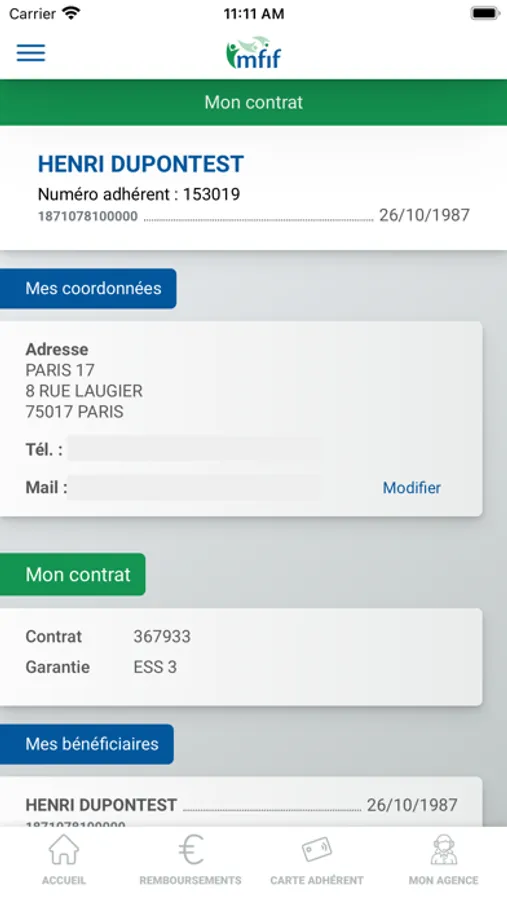 - Votre contrat avec vos bénéficiaires et cotisations - Vos informations personnelles