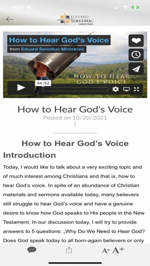 The ESM Teaching app is an app through which the Eduard Serediuc Ministries Christian organization distributes multi-language Bible teaching in multimedia video and audio messages format, as well as through articles and blogs. The mission of Eduard Serediuc Ministries is: