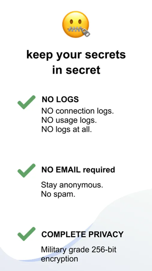 VPNarium is a VPN app, which hides your real IP address for websites and services. Their owners and your internet service provider never indentify you. Thus you keep your privacy when you want to access any content in the WEB. And it does NOT log your web activity. Unlike your internet service provider has to keep your web history for several years (depending on your country), VPNarium uses servers with RAM only. So we physically cannot log anything. It’s absolutely anonymous.