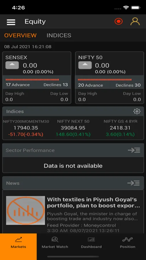 - Full-fledged financial market access which includes NSE, Nifty, Sensex, BSE 100, Bank Nifty, BSE MID CAP, along with Commodity and Currency Markets.