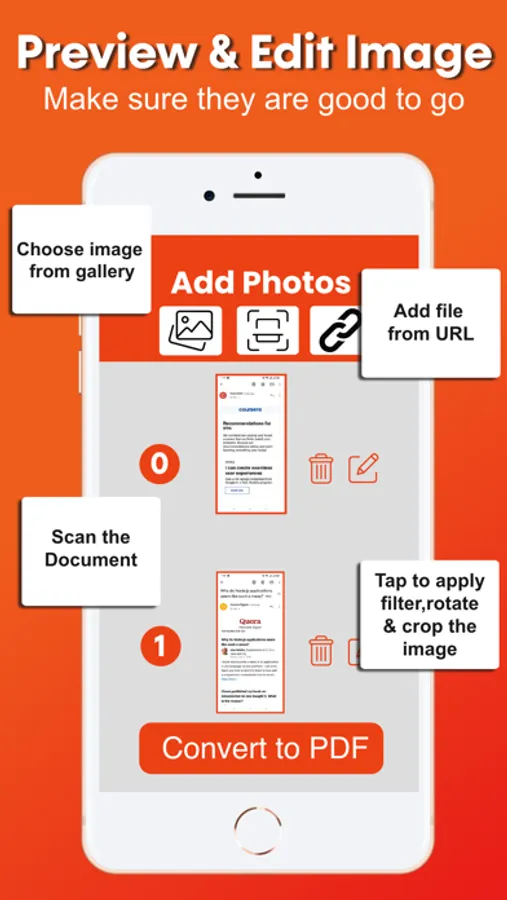 Photos to PDF can be as powerful as you want. Want a simple converter? You got it. Want to perform image rotation? You got it.