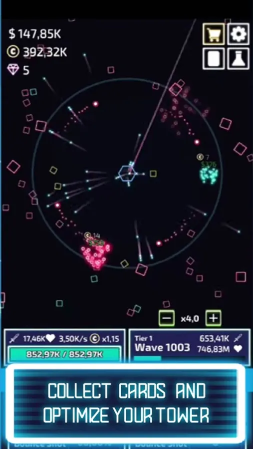 • Invest your valuable coins to permanently power up your tower in the workshop