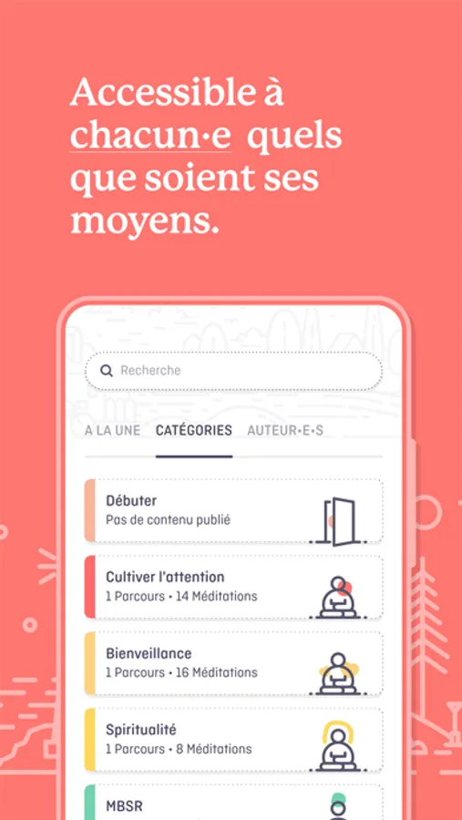 Accédez à des parcours thématiques variés afin de répondre à ce dont vous avez besoin en ce moment pour vous apaiser et grandir en sérénité :
