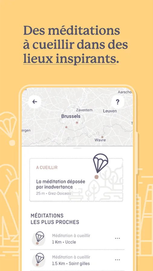 Prezens vous invite à découvrir des lieux inspirants où des méditations ont été déposées. Il est également possible de créer des groupes pour se soutenir et échanger sur sa pratique.