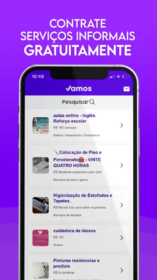 O app Vamos nasceu e já se consolidou como o meio mais fácil e prático de unir profissionais informais, autônomos e pequenos empresários que querem anunciar seus serviços com clientes que procuram rapidez e segurança na hora de contratá-los.