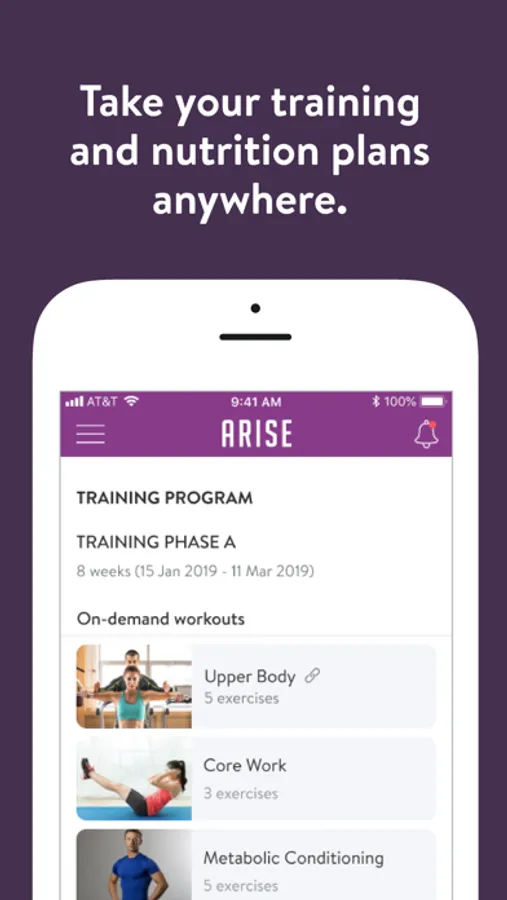 With the Arise Fitness Online App, you can start tracking your workouts and meals, measuring results, and achieving your fitness goals, all with the help of your personal trainer.