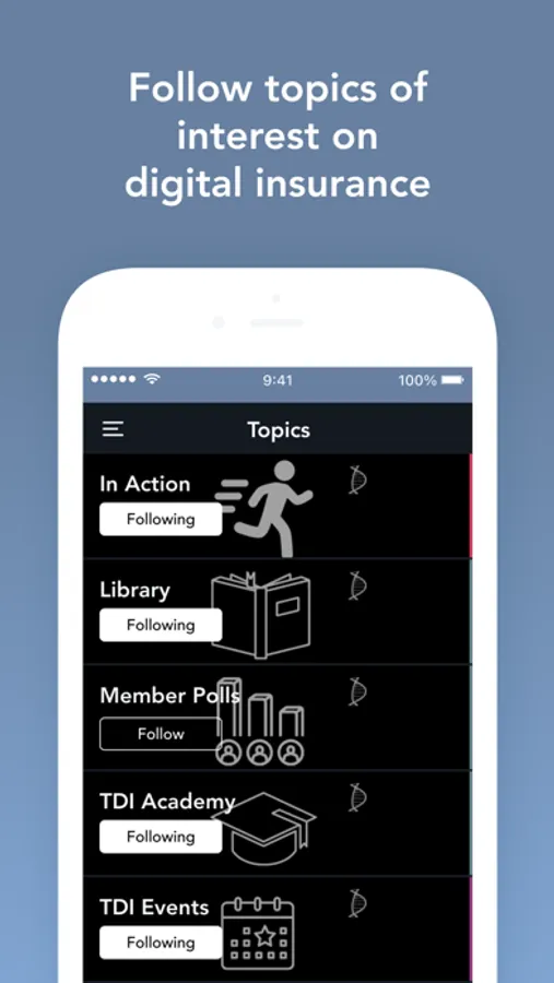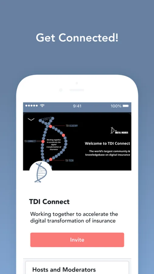 The TDI Connect app has been designed to allow insurance professionals to engage with content and people from around the world who are interested in working together to accelerate the digital transformation of insurance. It gives you a LinkedIn / Facebook type experience but is specifically created for content, insights and conversations on digital insurance