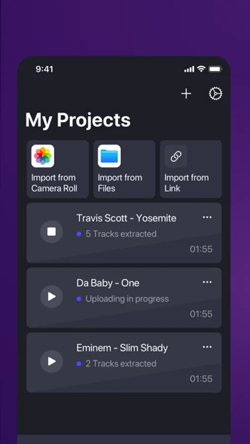 - Import a song or video by pasting a link to it, Unmix will download and process it.