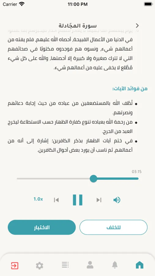 Khatmati helps you complete Qur’an and understand its meanings at the same time, with a simple explanation that appears after each page, and then a simple test in the form of questions that you must pass.