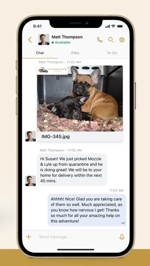 Shipping your furry friends requires constant communication with your agent. FFexpress has made it easier to respond and communicate via chat, phone, video calling, and document transfers. We are with you every step of the way. You will be informed on your pet's travels plans in real time.