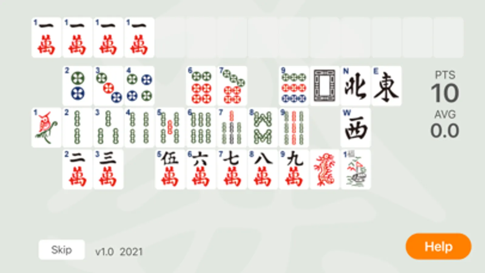 Points start at 10 and count down for each missed tile. Since more than one pattern is often possible getting 10s will involve some luck, but try for the highest score possible.