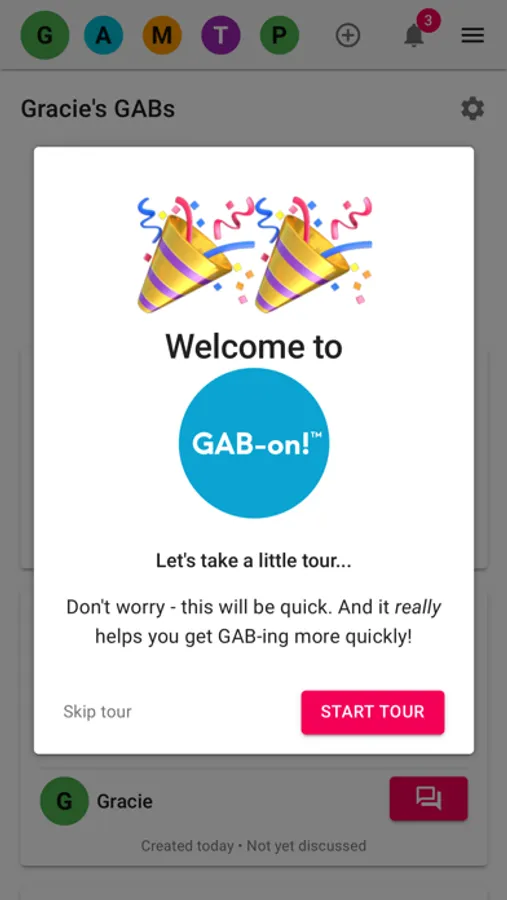 We make sparing use of notifications. If your child has their own device, we can send a reminder to enter GABs. We notify you when new GABs are ready for a conversation.