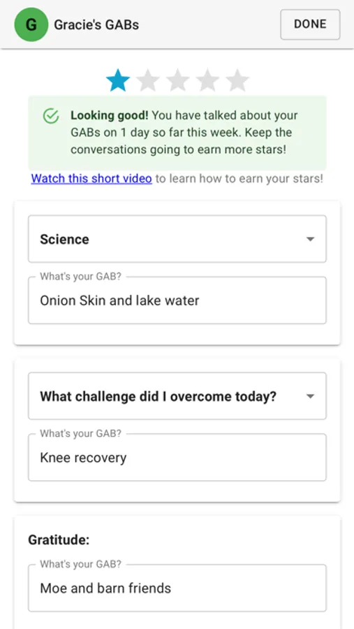 With GAB-on!, your child chooses a topic to start the conversation. During the school day, your child creates a few GABs - very short reminders of things that were interesting or important to them. It takes just a minute or two.