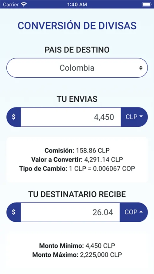 Así mismo, a través de nuestra app tendrás la tasa de cambio al día, donde podrás calcular el dinero que vas a enviar.