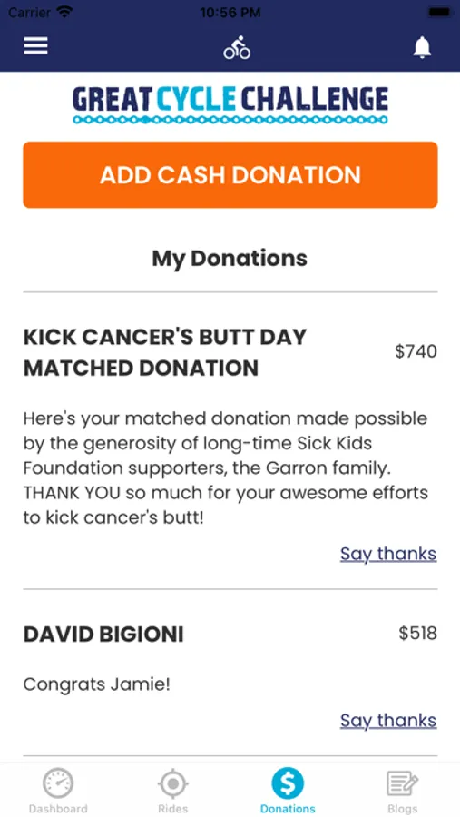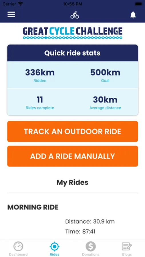 The app also allows participants to update their ride and fundraising goals, change their profile image, update their details, post blog updates, view past rides, thank sponsors, view leaderboards and more.