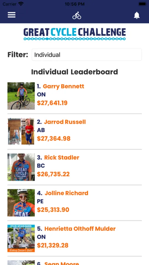Great Cycle Challenge's mobile application uses GPS to record the distance of your bike rides while taking part in the fundraising event to fight kids' cancer. Each ride immediately syncs with your individual and team fundraising profile pages and automatically updates the distance ridden towards your event goal as you chase it down!