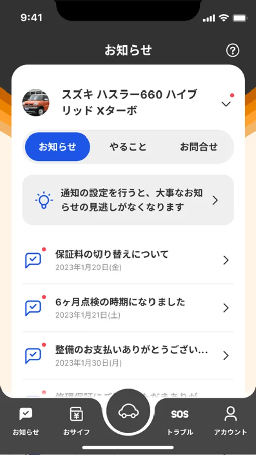 ・万が一のときには、ロードサービスやサポートセンターへすぐお電話ができます