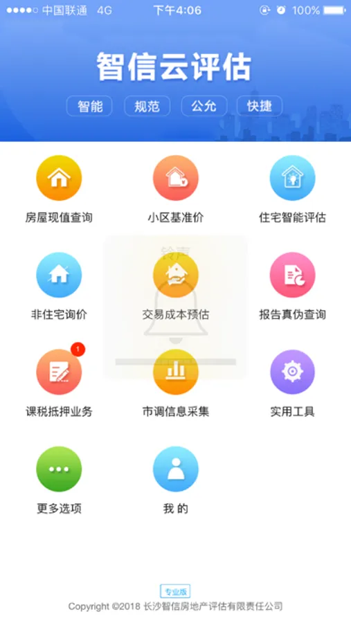 “智信云评估”是湖南省唯一、长沙市首家房地产价值云评估平台,是基于互联网和移动互联网的的房地产评估服务。在湖南乃至全国范围内,“智信云评估APP”不仅是“互联网+房地产评估”的代表,也是云计算和房价评估的完美结合,是大众了解房地产评估、运用房地产评估、熟悉房地产评估的前瞻地。“智信云评估”平台目前提供房屋现值查询系统、住宅智能评估系统、交易成本预估系统、课税业务查询系统、楼盘数据采集系统、智信云查勘系统等功能。房屋现值查询系统:该系统通过对市场大量调研,将收集到房产数据储存到云端,通过大数据分析建立房屋评估数学模型,用户只需输入房屋的产权证号、房号、产权人姓名等房屋信息点击“查询”,系统将从云端自动调出所评房屋的现值,该系统大大简化了评估程序,整个查询过程仅需几秒钟。由于操作简便,该系统非常适合于想知道自己房屋大概价值的客户群体。住宅智能评估系统:用户只需输入房屋的产权证号、房号、产权人姓等房屋信息后,系统将自动从云端智能匹配出房屋信息,用户只需要如实选择与房价紧密相关的房屋信息,点击评估,即可评估出房屋的精确市场价值。该系适合于银行和担保公司等金融机构、评估公司、房屋中介、房屋交易买卖双方等对房屋价格精准度要求高的客户群体。交易成本预估系统:该系统主要用于模拟房屋过户过程中,需要承担的过户成本计算过程。用户产权证号、房号、产权人姓等房屋信息后,系统将自动从云端智能匹配出房屋信息,在进行完模拟申报后,点击“交易成本预估”(住宅类),或者按要求上传房屋照片后点击“申请协助评估”(非住宅类),即可测算出交易过程中各项交易成本的明细。该系统适合于想知道房屋在过户过程中需要了解过户成本明细及大概金额的房屋中介、房屋交易人等用户。课税业务查询系统:该系统主要是将非住宅纳税过程步骤相关信息上传到云端,非住宅业务纳税申报后,用户只需凭预受理业务宗号、申报预留联系电话,就可从云端调出所查业务的实时信息和进度。该系统是专门为方便非住宅纳税评估纳税人能及时了解纳税评估进程而开发出来的一款云评估服务产品,该系统提供免费公益服务,实现纳税评估与纳税人的互动。