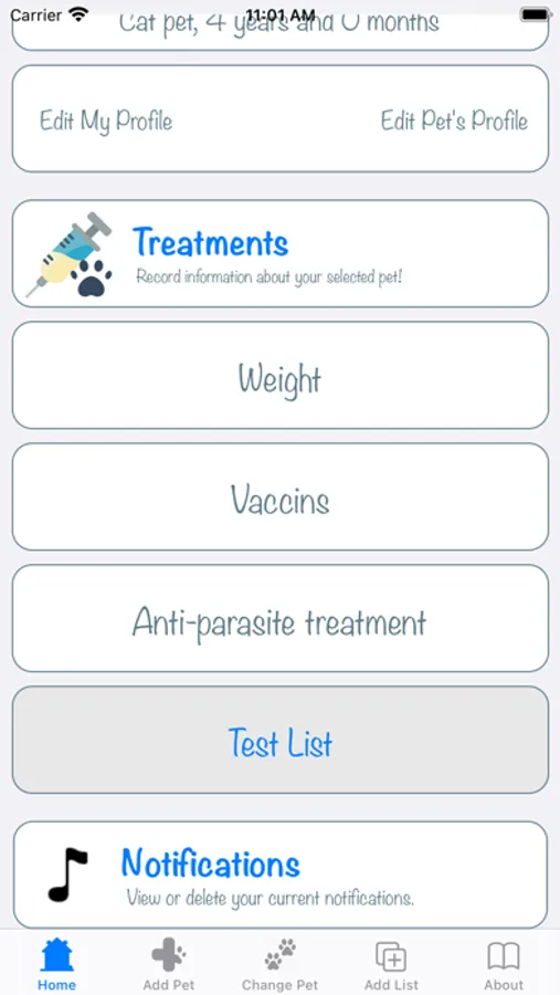 You can also add new lists. For example, in case of a cat, you might want to keep track of every hairball expelled.