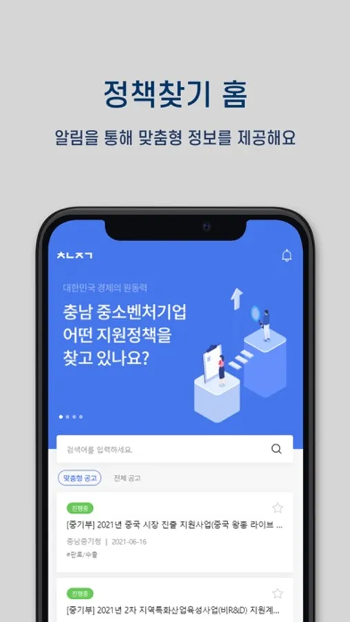- 지원 시책 대상 기업일 시, 푸시 알림을 통해 맞춤형 정보 제공