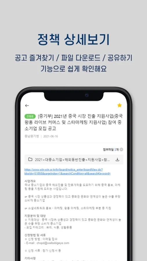 - 금융, 기술, 인력, 판로 등 원하는 카테고리의 정보를 선별적으로 취득 가능