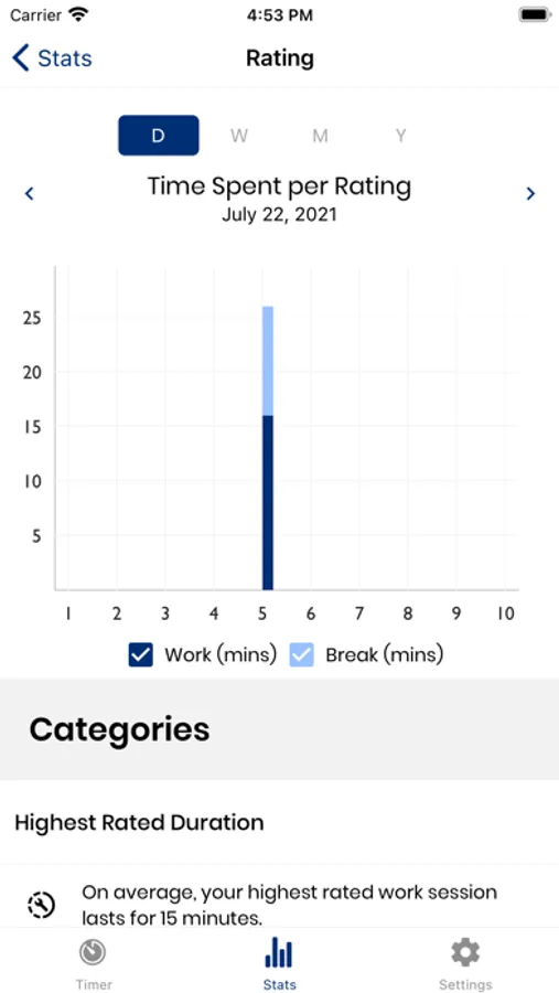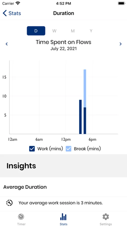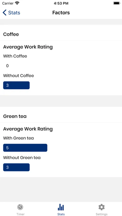Start by creating Factors in Settings or starting a Work Flow right away. Follow the prompts after your allotted amount of work time has passed, alternating between work sessions and breaks until you're done. After that, check the Stats options to see insights into how you work.