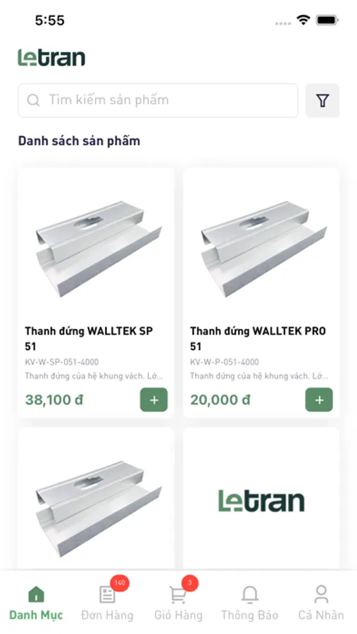 Ứng dụng đặt hàng dành cho khách hàng công ty Lê Trần