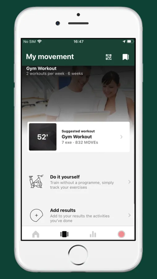 Een virtuele coach die u begeleidt tijdens uw training: Kies eenvoudig de training die u wilt doen in de Mijn beweging pagina en laat de app u begeleiden tijdens uw training. De app gaat automatisch naar de volgende oefening en geeft de mogelijkheid om uw training een waardering te geven en een volgende training in te plannen.
