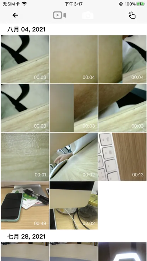 通过WiFi连接到我们的黑头仪后,可以实时查看面部黑头情况。通过拍照或者录像可以将当前画面保存至APP,然后可以通过APP相册或者系统相册进行查看图片情况、或者将其分享到好朋友