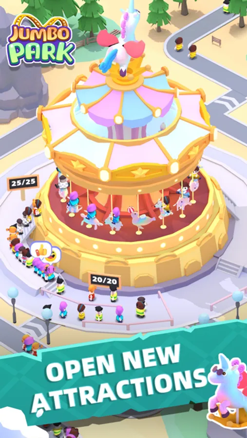 Build your dream park step by step, from a small roller coaster to a large-scale theme park with various luxury entertainment facilities. As more new attractions opened, create a funny area for your visitors and earn a lot of money.