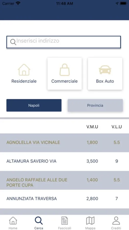 • Attraverso un filtro rapido puoi cercare rapidamente, in pochi secondi, le informazioni relative alla quotazione di una specifica strada di Napoli o Provincia relativa a una specifica tipologia di immobile.