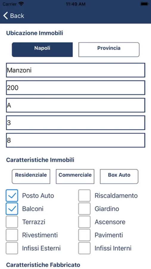 • Inserisci tutte le caratteristiche: camere da letto, locali, bagni, stato dell’immobile, tipo di proprietà, piano, garage e posto auto, riscaldamento e climatizzazione, presenza di balcone, terrazzo, giardino, ascensore, numeri di telefono, valore dell'immobile, punteggio di importanza.