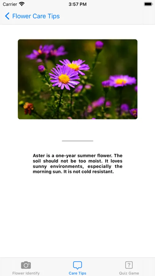 There is also a flower guide in the application. In this guide, there are care tips such as whether the flowers are annual or perennial, whether they like the sun and water.